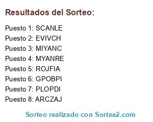 Lista de participantes: ARCZAJ, SCANLE(18 participaciones), PLOPDI(7 participaciones), GPOBPI(2 participaciones), ROJFIA(7 participaciones), EVIVCH(8 participaciones), MIYANC(5 participaciones), MYANRE(5 participaciones).