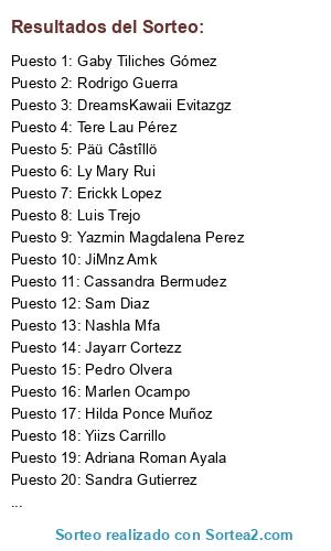 Lista de participantes: Nashla Mfa, Adriana Roman Ayala, Tere Lau Pérez, Ly Mary Rui, Hilda Ponce Muñoz, Cassandra Bermudez, Jayarr Cortezz, Luzimila Ebenezer, Sam Diaz, Fer Flores Rodriguez, Yazmin Magdalena Perez, JiMnz Amk, Gaby Tiliches Gómez, Rodrigo Guerra, Sandra Gutierrez, DreamsKawaii Evitazgz, Marlen Ocampo, Päü Câstîllö, Víctor Manuel Macedo, Erickk Lopez, Yiizs Carrillo, Luis Trejo, Cristina Gutierrez Leal, Pedro Olvera.