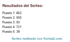 Este sorteo ha sido certificado por Sortea2. Sortea2 garantiza que: