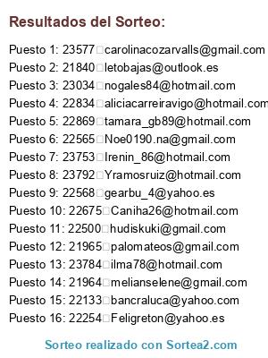 - GANADOR 5 : 22869 tamara_gb89@hotmail.com