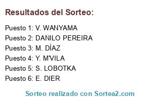 Lista de participantes: E. DIER, Y. M'VILA, V. WANYAMA, M. DÍAZ, S. LOBOTKA, DANILO PEREIRA.