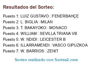 Lista de participantes: ILLARRAMENDI VASCO GIPUZKOA AB, L. BIGLIA MILAN, W. NDIDI LEICESTER B, W. BARRIOS ZENIT, WILLIAM SEVILLA TRIANA VB, T. BAKAYOKO MONACO, LUIZ GUSTAVO FENERBAHÇE.