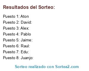 Lista de participantes: Juanjo:, Edu:, Jaime:, Raul:, Alex:, Pablo, David:, Aton.