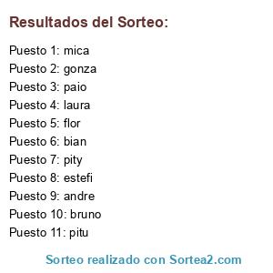 Lista de participantes: bian, mica, andre, paio, flor, bruno, gonza, pitu, estefi, pity, laura.