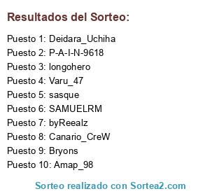 Lista de participantes: Javierj, n182_182, ThePlayeeRz, Extingido, kamicace1, Dj Capa, MaGiik-VarOo, juanqui_rp, aLeex13, Marco, oscarmj11, xCrisT-_, GDH6200, MisterAndAdri, PoKEnu, DanWork, Gornes_B, Cadel_dkv, Camarc95, pelicano_02, Canario_CreW, RICKY4BCN, siffty, oscar_rcob, Pakto96, AnSiA_RoTa, Opforen, Bryons, Nasbul, xSpanishSoldieRx, P-A-I-N-9618, ismael_focus, Spacer, PhOeNiX_Bo_99, Chocolatrix, Plamen_1996, zSPiRiiT, CaliifaX, LosT-rivaaS, NeloX, marcosbt, xMandz, Varu_47, Mesuz, Betorro, tehjokertoxiik, alvarohardy, Xx_MeRoT_xX, fran_escri, sanxix, xBeTox_96, Bohevi, alexpenya5, JORNADA16, DobleSe, Slar_9, misujin_o, Rakken, PUPOXX, alb_esp, Jorge_Spain, PacoMermela, iSeok, GUILLEE95, divy_A17, xiscocod7, pablillo_zgz, CintasS19, eny96, sanchoalag96, Dani_C, bugma, x1834', Piney01, iNauK-, Amap_98, Mozzy, neirubo, kiamasu, LaPene, maalre, DeMuNs, pauete-6, xSniiPeeZz-, Djalbert1, Jokinzazpi, Yillen, xKillerz07, xinxe_, daviditoo7, adriangabu, eNNz0, Franblue11, alxoskate, longohero, KUN_Biboko, GameOveR, La-Penetrasa, aki-el-k-no-fuma, Eduardo0088, dantesko, kikext, FnaTikc, SAMUELRM, XxRubnxX, asiersarmi, Lukasone, ado30299, Ghostsoldier5, Râiddenz, tuso, nodas11, Nameless, markillosbm69, hit-10, sasque, Casika, Deidara_Uchiha, juas-juas-xd, admin essential, JahLovE_1, J-O-R-G-E-4, AiToRPuZoL, Josele15, Double0PS, Felpemor, Pastorret, _MegaPeneGigantePentrador, I3uigues, josefon96-, er_lego, villaka1, byReealz, Dj_GNS, RadiiNiL, Sinesterw, Chulopu, juansanchez1993, Raulyuka, Hock, Lewisteiger, raulpb00, spaider091, hp-pablillo, Supermantxitos, TheRuGaR, sergio-em17sas, elsnake88, SleepingCuriosity, d_predator_15, luffy96.