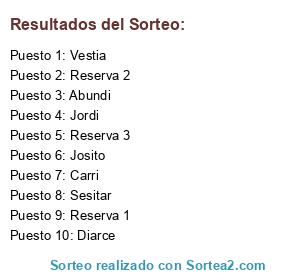Lista de participantes: Sesitar, Abundi, Diarce, Carri, Jordi, Josito, Vestia, Reserva 1, Reserva 2, Reserva 3.