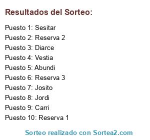 Lista de participantes: Sesitar, Abundi, Diarce, Carri, Jordi, Josito, Vestia, Reserva 1, Reserva 2, Reserva 3.