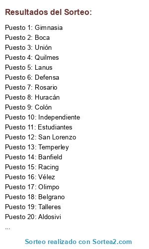 Lista de participantes: Banfield, Defensa, Huracán, River, Boca, Independiente, Estudiantes, Talleres, Godoy cruz, Belgrano, Gimnasia, Newell's, Quilmes, Olimpo, Racing, Rosario, San Lorenzo, Tigre, Vélez, Aldosivi, Colón, Temperley, Lanus, Unión.