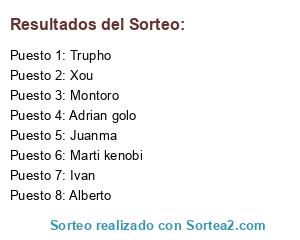 Lista de participantes: Alberto, Ivan, Montoro, Trupho, Marti kenobi, Xou, Juanma, Adrian golo.