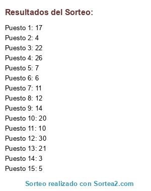 Lista de participantes: 1, 2, 3, 4, 5, 6, 7, 8, 9, 12, 10, 11, 13, 14, 15, 16, 17, 18, 19, 20, 21, 22, 23, 24, 25, 26, 27, 28, 29, 30.