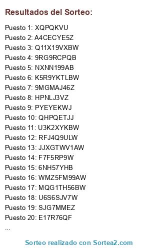 Este sorteo ha sido certificado por Sortea2. Sortea2 garantiza que: