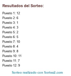 Resultados del sorteo: