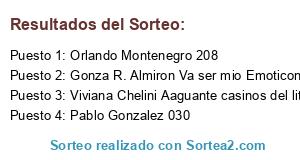 Lista de participantes: Jorge Ocampo Muy buenos los casinos del Litoral. quiero participar. soy de los Toldos, bs.as 753, Rodrigo Encinas Buenas me gustaría ganar algunos de los premios rodrigo 563, Maria Jose Sandoval Maria José. 939 Los quiero. , Viviana Chelini Aaguante casinos del litoral,,quiero el combo..318!!!, Raul Romero quiero la gorra raul 716, Gonzalo Nicolas Diaz Quiero la gorra Emoticono frown 855, Lorena Castillo QUIERO PARTICIPAR 088, Mirta Fernandez Quiero una .siempre voy 402, Matias Caceres Aguant casinos del litoral 601, Merri Giménez que la suerte me acompañe. 280, Arielo Miño Yo quiero algo chee denme una trompada enquesea.. O Sigo croteando....?? 495..., Diogo Franco quieroo quiero ja 733, Miguel Vallejos uno es mio. Miguel 230, Gonza R. Almiron Va ser mio Emoticono smile Emoticono wink 630, Joselo Ortellado Jose 286, Angel Gabriel Yooo 482, Luly Bustos 034 Emoticono smile, Martín Encinas Nuñez Buen dia... ojala tenga suerte... Martin 701, Isaa Miguel Isabel 663, Dani Cano Daniel 948, Romina Sena Quiero todooo! 351, Dario Dip Dario 613, Prisci Cerullo Yo quierooo yo quierooooooo... Emoticono smile 947, Noelia Samaniego Casinitooooooo....976, Emilia Soto 053 Emoticono smile, Ruben Gomez Ruben 424, Carlos Meza Juan Carlos 934, Romina Meza ROMINA 058, Alfon Esquivel alfonsina Esquivel 636, Matias Raggi Uno me llevo !!! 493, Ramoa Diego Diego 336, Rober Baez Quiero!!! 115, Raulito Sanchez Paredez 232 Emoticono smile, Silvana Soledad silvana 296, Felipe Almeida Quiero .184, Milne Javier Esta bueno!!!!, Hugo Daniel Cerdan 488 Hugo cerdan, Diana Dame Diana 279, Juan Acosta Juan Acosta 346, Guido Franczak Guido 138, María Eugenia Maidana Bejarano 590, Ximena Barnada 116, Érika R. Canteros 886, Fabian Barrios 272, Carlitos Sappa 023, Chunty Moreyra 392, Pablo Gonzalez 030, Javier Carlos Caminos 479, Juan Alberto Maldonado Yo quiero todo ja... 060, Alicia Rohde Alicia 285, Nuñez Cynthiia Nahuel Ivan Ibarra 455, Nuñez Cynthiia Cynthiia Nuñez 963, Orlando Montenegro 208, Fer Nando Romero 282, Jose Acosta Jose Acosta696, Cesar Castillo ;-( 222, Christian Cobain Christian 186 !!!, .