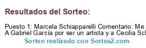 • Ganador: Marcela Schiapparelli Comentario: Me encantan! Yo les regalaría una a Mili Garcia porque siempre le gustaron las tazas personalizadas y se le han roto. A Gabriel García por ser un artista y a Cecilia Schiapparelli porque me la regalaría a mí 😉😉
