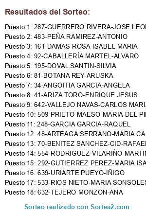 Resultados del sorteo: