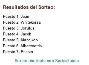Lista de participantes: Albertotetris, Joan, Jacob, Whitekorsa, Alancikoo, Ericoto, Jorvifus.