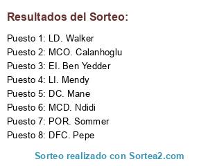 Lista de participantes: POR. Sommer, LI. Mendy, DFC. Pepe, DFC. Koulibaly, LD. Walker, MCD. Ndidi, MC. Jorginho, MCO. Calanhoglu, ED. Machis, EI. Ben Yedder, DC. Mane.