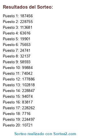 Resultados del sorteo:
