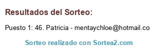 - Puesto 1: 46. Patricia - mentaychloe@hotmail.com - www.mentaychloe.blogspot.com