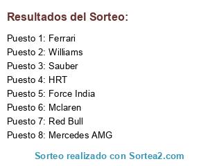 Lista de participantes: Ferrari, Mclaren, Red Bull, Williams, Force India, Sauber, Mercedes AMG, HRT.
