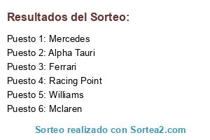 Lista de participantes: Mercedes, Ferrari, Red Bull, Alpha Tauri, Mclaren, Renault, Alfa Romeo, Haas, Williams, Racing Point.