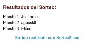 Lista de participantes: Xiao Quiao, agussk8, skya johar, Black titan 2, god of love, AdaWong3008, Just meh, Fubuki10, mr dead, 7yre, other blue, like silent, T U X D H I J O, PowerMauro, tocti, Bananon, Galaor01, Baron Rojo Sur, destrucciontotal, Elitee, patriciorey, FENIZ2012, Josecancer, xPsycodreamx, xxxlaloxxx, Luke Cage, dark slider, Bayut123, Ghost Wolf, MonkeOfDestroy, lady slim, Saria, blackmasterpro.