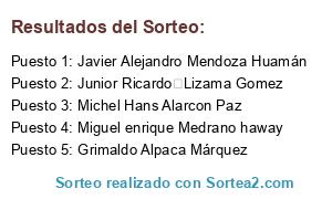 - Puesto 1: Javier Alejandro Mendoza Huamán