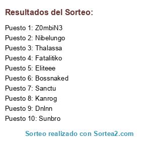 Lista de participantes: Z0mbiN3, Bossnaked, Nibelungo, Sunbro, Eliteee, Sanctu, Kanrog, Thalassa, Dnlnn, Fatalitiko.