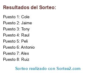 Lista de participantes: Tony, Ruiz, Alex, Jaime, Peli, Cole, Raul, Antonio.