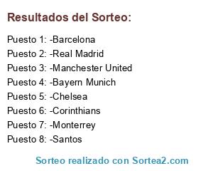 Lista de participantes: -Barcelona, -Real Madrid, -Chelsea, -Manchester United, -Santos, -Corinthians, -Monterrey, -Bayern Munich.