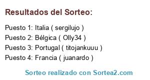 Lista de participantes: Francia ( juanardo ), Portugal ( titojankuuu ), Italia ( sergilujo ), Bélgica ( Olly34 ).