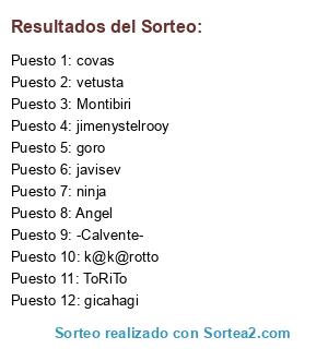 Lista de participantes: gicahagi, goro, ninja, Montibiri, -Calvente-, jimenystelrooy, Angel, vetusta, ToRiTo, javisev, covas, k@k@rotto.