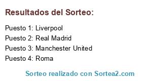 Lista de participantes: Manchester United, Liverpool, Real Madrid, Roma.