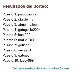 Lista de participantes: abrielmailop, seva231, goticoc, gatojedi, luccy999, stardelmar, gatuguille2004, mailie 703, itual222, joacocasiva.