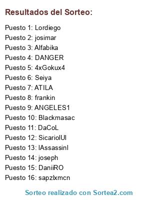 Lista de participantes: joseph, ANGELES1, 4xGokux4, DaniiRO, Blackmasac, lAssassinl, Lordiego, SicariolUl, frankin, DaCoL, DANGER, josimar, Alfabika, ATILA, Seiya, sapzlxmcn.