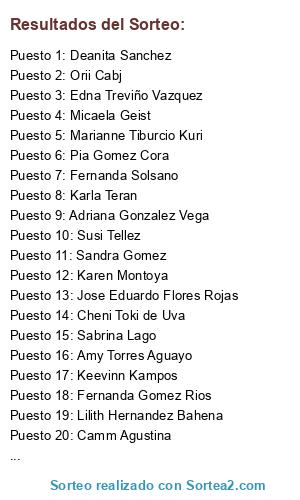 Lista de participantes: Lizbeth Hernandez Aquino, Amy Torres Aguayo, Melina Españón, Sabrina Lago, Cheni Toki de Uva, Jose Eduardo Flores Rojas, Keevinn Kampos, Fernanda Gomez Rios, Lilith Hernandez Bahena, TámÚh PópÓk, Camm Agustina, Sandra Gomez, Karen Montoya, AMaria Garcia, Micaela Geist, Edna Treviño Vazquez, Jessica Wong Nabte, Orii Cabj, Deanita Sanchez, Marianne Tiburcio Kuri, Pia Gomez Cora, Susi Tellez, Adriana Gonzalez Vega, Karla Teran, Fernanda Solsano, AndreZz Cyrus RojaZz.