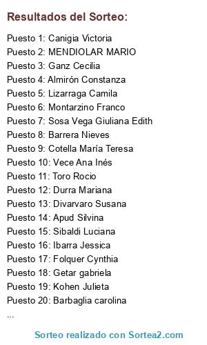 Resultados del sorteo: