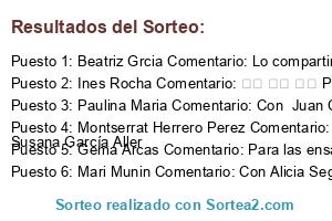 - Ganador 4: Montserrat Herrero Perez Comentario: Que bueno!!! Susana García Aller