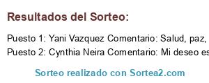 - Ganador: Yani Vazquez Comentario: Salud, paz, amor y felicidad para las personas!!