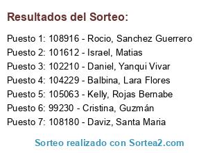 Lista de participantes: 111602 - Libertad, Galvan, 111287 - Ruben, H., 111080 - Eduardo Daniel, Parra Bruno, 110642 - Leopoldo, Quispe Salvador, 109647 - Leopoldo, Quispe Salvador, 109093 - Manuel, Narciso, 108916 - Rocio, Sanchez Guerrero, 108902 - Olga, Elena Huaman, 108871 - Israel, Matias, 108643 - Patricia, Mezones, 108286 - Cristina, Guzmán, 108180 - Daviz, Santa Maria, 108165 - Monica, Colque Morales, 107858 - Libertad, Galvan, 107719 - Gian, Franco Cavallero, 107630 - Eva, Garrido, 107363 - jessika, pereyra galvez, 107304 - Eduardo Daniel, Parra Bruno, 106918 - Claudia, Curi Bambaren, 106731 - Karina, Cardenas, 106581 - Luz Maria, Abanto Gomez, 106541 - Tatiana, Orellana Zumaeta, 106507 - Elizabeth, Ayala Mendoza, 106416 - Morayma, Quispe, 106329 - Rosario, Flores, 106299 - Olga, Elena Huaman, 106183 - Alicia., Azabache Zanabria, 105988 - jessika, pereyra galvez, 105692 - Jhon, Molina, 105528 - Daniel, Yanqui Vivar, 105276 - cristian, lauos, 105063 - Kelly, Rojas Bernabe, 105003 - Israel, Matias, 104623 - Xiomara, vega tarrillo, 104574 - Pedro, Lastres Soriano, 104354 - gustavo, caballero, 104229 - Balbina, Lara Flores, 104200 - Goyo, Wiesse, 102803 - MARCELO, VALDIVIA, 102210 - Daniel, Yanqui Vivar, 101612 - Israel, Matias, 100702 - Xiomara, vega tarrillo, 100648 - Maria, Luz Tejada, 99230 - Cristina, Guzmán, 96998 - benjamin, Ramirez, 91871 - George, Zamora, 89274 - Rosario, Lumbre Cama, 89124 - kike, muxoz, 88114 - Carlos, Lumbre, 87342 - Pedro, Lastres Soriano.