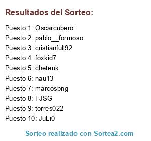 Lista de participantes: marcosbng, nau13, pablo__formoso, foxkid7, FJSG, cristianfull92, cheteuk, JuLi0, Oscarcubero, torres022.