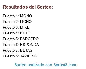 Lista de participantes: MIKE, PARCERO, BETO, ESPONDA, LICHO, JAVIER C, BEJAS, MONO.