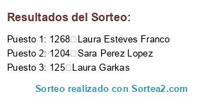 Lista de participantes: 7 María Fernández Ramón, 8 Patricia Cordo, 13 Sara Cáceres Eleria, 17 Maria Jesus Puertas Martin, 18 Julia Beatriz Novoa, 26 Cris Fernández Recuero, 28 Valeria Katalina, 29 Paloma Gómez, 35 Lola Gamonal González, 36 Esther Fuentes, 37 Ana Belén López Romo, 38 Vanessa Cortecero, 40 Maria Alves, 42 Alejandra Fungueiriño, 43 Natty Ferrufino, 44 Fatima Castedo Sanchez, 45 Yesica Mendez Ferreiro, 47 Sandra Jurado, 54 Noe Dll, 55 Verónica Hernández, 57 Ana Belen Silva Ramos, 66 Ana Maria Gutierrez Rodriguez, 68 Alejandra Fungueiriño, 69 Hime Trece, 70 Sara Serrano, 72 Irene Rodriguez, 76 Monica Garcia Principe, 79 Cris Ros Bedia, 81 Ana Belén López Romo, 82 Alba Garcia, 88 Lorena Castro Maté, 90 Patricia Cordo, 93 Lina Victoria, 98 Mati Cuevas, 100 Cristina García Murillo, 103 Teresa Garcia del Valle, 105 Pilar González Pont, 106 Laura De Juan Zamora, 107 Esther Fuentes, 110 Lina Marcela Aldana, 111 Marisa SG, 120 Lauu Szp, 1. A. M., 124 Olalla Camacho Martin, 125 Laura Garkas, 132 Manoli Montarroso, 135 Alba Vargas, 139 Eva Sanchez Garcia, 141 Marina Pachon Lopez, 143 Estefanía Moreno Rodas, 146 Patricia Fernandez, 151 Lucía Gómez Sánchez, 155 Ana Isabel Herranz Garcia, 158 Mónica Montouto, 163 Noe Dll, 166 Moni Sanchez, 172 Laura Sanchez, 173 Lorena Solis Linares, 178 Andrea Roman Rodriguez, 179 Aitana Lloret, 183 Vanesa Sanz, 184 Susana Mateos Gala, 186 Teresa Escribano Faduhilao, 188 Cristina Ortiz, 189 Fatima Castedo Sanchez, 191 Silvia Claramunt, 192 Rosabel Molina Olías, 197 Itziar Domingo Martins, 201 Paula Gomez Olivares, 202 Bego MorMez, 205 Julia Beatriz Novoa, 206 Carmen Samalea, 208 Andrea Ruiz Peña, 209 Emilie Breining, 211 Mariamatilde Carrasco, 213 Anyssa Haz Chez, 220 Diana Burguillo, 225 Elena Montilla, 228 Cristina Nh, 235 Paula Becerril Fuentes, 242 Eva Galablo, 245 Silvia Fernandez, 250 Lina Victoria, 251 Pilar Pilarita Maripili, 253 Cecilia Barrera Urtiaga, 254 Leticia de Castro, 257 Veronica Mar, 259 Cecilia Rojo Sánchez, 265 Emilie Breining, 267 Florencia Barbero Shymitzk, 270 Cristina Fraile Arroyo, 275 Paky Chacón, 278 Marta Balbuena, 279 Vicky N Escola, 283 Natalia Torrens Salgado, 286 Valeria Katalina, 291 Diana Burguillo, 299 Gema Pascual, 309 Emma Mateos Gala, 311 Sara Cgil, 315 Maria Hernanz Fernandez, 318 Monica San Jose Zapico, 319 Maria BM, 320 Sandra Gomez Valles, 323 Esther GV, 324 Lucía Gómez Sánchez, 326 Karol de Jesus, 327 Monica Garcia, 329 Soraya Gonzalez Antolin, 330 Rocio Nieto Campo, 331 Luzma Gonzalez, 335 Vanesa Sanz, 336 Irene Rodriguez, 339 Cris Sánchez Martín, 343 Elena Galiana, 344 Macarena Bueno Horneros, 347 Gema Moreno Prado, 349 Neerea Espejo, 352 Esther Ruiz Vidal, 353 Tatiana Soblechero Juez, 358 Alla Rudenko, 363 Maivel Suarez DF, 365 Begoña Gonzalez Roa, 366 Paz Mar, 367 Maria Crespo, 368 Maria San Miguel Nuevo, 369 Virginia Sorribas, 372 Julissa Espinal, 374 Alba Ortega, 375 Elisabeth Duran, 377 Cristina Rey, 378 Rocío Medina, 383 Paula Saiz, 384 Maria Collado Rando, 393 Arancha Bahon Bueno, 399 Ana Veliz, 406 Alba Díaz Sánchez, 417 Estela Gmg, 424 Coral GC, 427 Cynthia Callejo, 428 Sonia Martin Regueiro, 430 Maria Barajas Blanco, 433 Mar Lety, 436 Rocio Fdez Cisneros, 438 Elena Ele, 439 Eva Sanchez Garcia, 446 Monica Garcia, 448 Cris Garcia Iglesias, 451 Rosae Hada, 454 Myri Martín Desiderio, 456 Saris Lg Lg, 458 Srta Serrano, 459 Monica Ballester, 460 Mirella Rodriguez, 469 Gema Pascual, 470 Rudy Sn, 473 Leticia de Castro, 476 Ana Romero Castro, 477 Sandra Martinez, 483 Angelica Garcia Martinez, 486 Laura Castro, 487 Reina Martinez, 493 Andrea Cadavieco, 494 Maria Crespo, 500 Jimena Dorado, 503 Carmen AC, 506 Alla Rudenko, 511 Eva Losada Cartón, 519 Esther GV, 522 Inés Uriarte Inchausti, 523 Paulina Pniewska, 525 Nuri Abanads Virsda, 526 Erika Alvarez, 528 Ana López Sarmiento, 534 Laura Guerrero Labrador, 535 Laura Olivera, 536 Susana Pasquin Agero, 538 Andrea Gaisc, 539 Ana Sánchez, 542 Alejandra Fungueiriño, 544 Tamara Marin Garcia, 546 Aryany David, 550 Elena Galiana, 555 Lidia Abellán Díaz, 558 Veronica Diego, 559 Ana Aznar, 567 Cristina Bermejo, 568 Prado Prado Gonzalez, 569 Sonia Martin Regueiro, 573 Sandra Ruiz Mozo, 582 Natalia González, 591 Sara Gutiérrez Caselles, 595 Michu Navarro Montoya, 598 Aida Amota, 601 Diana Apellido, 604 Marian Reinoso, 606 Marta Tenorio, 610 Dara Sanz, 612 Yulia Kuzema, 613 Esther Burdalo Pizarro, 623 Itziar Ordoñez, 625 Almudena Moledo Jimenez, 626 Échthra Atalapastruka, 633 Laura Lu, 636 Andreea Soare, 637 Sara Perez Lopez, 639 Gemusha Df, 643 Aman Dita Barcala Bernal, 647 Clara Torres, 653 Rocio Nieto Campo, 663 Rocio Calleja, 670 Crysstina Cristina, 671 Covadonga Malik, 672 Andrea Caña Paradinas, 678 Cindy Paola Carabali Camacho, 683 Verónica Hernández, 685 Natalia Crespo García, 688 Veronica Perez, 691 Diana Mamolar, 692 Vero de la Fuente, 695 Aida Amota, 697 Leticia de Castro, 698 Marta Hurt, 699 Evi SVilches, 700 Rocío G. Pinell, 703 Andrea Gaisc, 705 Paula Gomar Madejon, 706 Elenita Del Rio Galindo, 708 Maria Jesus Grande, 712 Gabi Lemos Sánchez, 713 Arancha Bahon Bueno, 715 Paqui Moreno, 718 Cris Garcia Iglesias, 721 Isa Sequera, 725 Esther Gómez del Amo, 727 Esther Gonzalez Ortiz, 729 Susana Hernandez, 731 Paloma Gonzalez, 736 Monica Garcia, 741 Loly Montañés, 749 Sandra Moliner Gutiérrez, 754 Carpediem Sainz, 757 Monica Muñoz, 758 Patri Valdemayor, 760 Maria Jimenez, 762 Lorena De Nueve A Nueve, 763 Cristina Cuadrado Muñoz, 764 M Angeles Elvira Romero, 768 Sari Gajate, 769 Anaisa Viñuelas Bailador, 773 Marina Chicharro Gonzalez, 774 Raquel Martínez, 775 Caribel Lombardi, 784 Clara Perez, 790 Teresa Martinez Martinez, 791 Mary Mar Sanchez, 796 Inma de Pablo, 801 Cristina Gómez Adcm, 805 Maria QR, 811 Paula Becerril Fuentes, 812 Rosae Hada, 813 Eva Gonzale Roman, 818 Sele Millanes Chao, 820 Giralinda Andrade, 828 Cecilia Novara, 830 Tatiana Soblechero Juez, 834 Valou Rbn, 835 Silvia Fernandez, 839 Maits