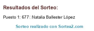 Lista de participantes: 644 Cristina Galea Segura , 645 Lara Gomez , 647 Lidia Gil , 650 Lidia Gil , 651 Teresa Perez Bejar , 654 Juan Manuel Moreno , 655 Juan Manuel Moreno , 656 Alejandro Zapata Zabalza , 657 Sara Sanchez de Paco , 658 Nuria Perez Ortega , 659 Ana Herrera Plaza , 660 Mari Angeles M Angeles , 661 Irene Freixinos , 662 Juan Carlos Ballester Irles , 664 Sandy Ls , 665 María Hernández Mompeán , 666 Cristina Rubio Moreno , 668 Gema Ferrer Fernandez , 669 Vane LoyFer , 670 Leticia Pérez Rodríguez , 671 Esther Perez Colomina , 673 Isabel PS , 674 Carmen Andujar Morales , 675 Virginia Gallardo Martinez , 676 Reme Cano , 677 Natalia Ballester López , 678 Libertad Alcazar Vicente , 679 Andrea Coll , 680 Blanca Bernabe Garcia , 681 Ainhoa Sarrías , 684 Sonia Lopez Romera , 685 Almudena Soler Sanchez , 687 Elena Esteban Sánchez , 688 Jose Angel Alarcon Espejo , 689 María Acosta , 691 Cristina García Cortés , 692 Rafael Lopez Ruiz , 693 Carmen Carcaño , 694 Isabel De La Cruz , 696 Laury Gea , 698 Eva Maria Olmos Cortes , 699 Mamen Ortega , 700 Myl Cmb , 702 Manuel HM , 703 Pilar Limiñana Belda , 704 Lucia Ruiz , 705 Silvia Muñoz Cuello , 706 Marivi Miravete , 707 Carmen Maria Gimenez Martinez , 709 Alberto Lucas Mayol , 710 Moreno Francisco , 711 Beatriz Gonzalez Miguel , 712 Jana Simone Kolejakova , 715 Maria Dolores Lison , 716 Reme Tornero , 717 Aurora Hernandez Sanchez , 719 Rosa Marin , 720 Paola Navarro , 721 Raquel Pardo Escudero , 722 Noelia Tenza Ruiz , 723 Rosa Quiles Guillen , 725 Lucia Ballester Sanchez , 726 Alicia Barrancos , 727 Mari Carmen Egea Pellicer , 728 Marta Nicolas Perez , 729 Ana Cervera , 730 Maria Marin Vaquero , 731 Javier Belmonte , 732 Maria Fragoso , 733 Olga Soriano , 734 Silvia Martínez , 735 Elisabet Navarro Marin , 736 Mariló Meroño González , 737 Cristina Valverde Muñoz , 738 Miguel A Aroca , 739 Lola Cortes Larios , 740 Lorena Illan del Cerro , 741 Emilio Picón Reverte , 742 Rosa María Graña Latorre , 743 Inés Garis , 744 Mari Carmen Puerto , 745 Martha Acosta Bravo.