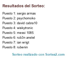 Lista de participantes: rubenin, david cabra10, rub3n anstel, psychomoko, wiskytronic, sergio armas, ian wrigt, messi 1085.