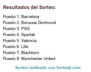 Lista de participantes: Borussia Dortmund, Barcelona, PSG, Blackburn, Spartak, Manchester United, Lille, Valencia.