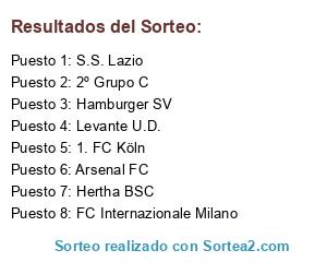 Lista de participantes: S.S. Lazio, Hertha BSC, 2º Grupo C, 1. FC Köln, Levante U.D., Arsenal FC, Hamburger SV, FC Internazionale Milano.