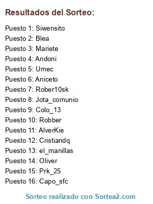 Lista de participantes: Oliver, Blea, Prk_25, Umec, AlverKie, Robber, Capo_sfc, Cristiandq, Colo_13, Mariete, Andoni, el_manillas, Jota_comunio, Siwensito, Aniceto, Rober10sk.