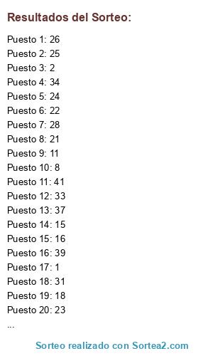 Lista de participantes: 1, 2, 3, 4, 5, 6, 7, 8, 9, 10, 11, 12, 13, 14, 15, 16, 17, 18, 19, 20, 21, 22, 23, 24, 25, 26, 27, 28, 29, 30, 31, 32, 33, 34, 35, 36, 37, 38, 39, 40, 41.