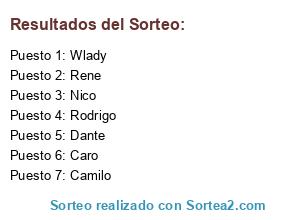 Lista de participantes: Nico, Caro, Dante, Wlady, Rene, Rodrigo, Camilo.